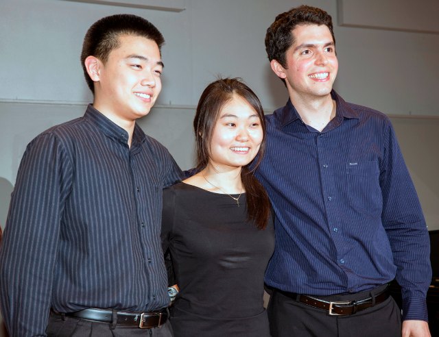 - Photo 03: (Left to right) Performance level winners: Violinist Likai He (25; Jacksonville), cellist Ye Young Yoo (21; Sarasota) and violinist Ryan Meehan (25; St. Petersburg) at the 2015 Competition for Strings on April 11 at the Beatrice Friedman Symphony Center in Sarasota. Photo by Rod Millington.
