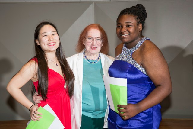 - Photo 04: (Left to right) Cellist Erica Ogihara, Edie Winston (ASC donor), and violist Cameren Anai Williams at the 2015 Competition for Strings on April 11 at the Beatrice Friedman Symphony Center in Sarasota. Photo by Rod Millington.