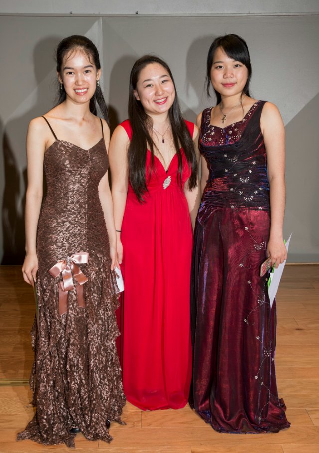 - Photo 08: (Left to right) Scholarship level winners: Violinist Erin Liana Branscome (17; Palm Beach Gardens), cellist Erica Ogihara (17; Pinecrest) and violinist Xiaonan Huang (19; Boca Raton) at the 2015 Competition for Strings on April 11 at the Beatrice Friedman Symphony Center in Sarasota. Photo by Rod Millington.