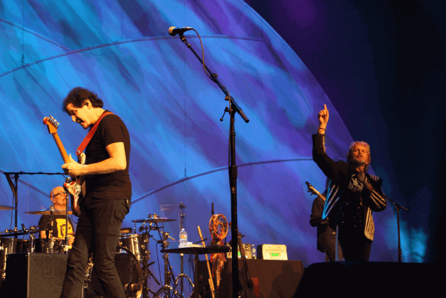 Yes featuring Jon Anderson (vocals), Trevor Rabin (guitar), and Rick Wakeman (keyboards), performed live at Ruth Eckerd Hall on Wednesday, October 11th, and they did not disappoint. Dedicated fans packed the house as the 70’s progressive rock icons returned to the stage for yet another unforgettable performance. As the house lights dimmed and the light show commenced, the spotlight turned to Rick Wakeman standing behind his keyboards and synthesizers, wearing his shiny wizard cape, playing instrumental sounds. The crowd cheered and clapped thunderously. Then, Trevor Rabin graced the stage with his guitar while Jon Anderson sauntered over to his platform on the middle of the stage, and the fans were overwhelmed with excitement. They were whistling, screaming, and gave a standing ovation as they anxiously awaited the first verse of Perpetual Change.