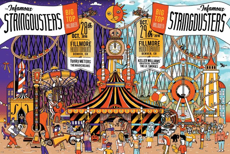 The INFAMOUS STRINGDUSTERS have announced plans for an exciting two-night Halloween extravaganza at Denver’s Fillmore Auditorium entitled BIG TOP HALLOWEEN. Set for Friday, October 28 and Saturday, October 29, the shows will feature special guests funky METERS and The Magic Beans (Friday night) and Keller Williams’ Grateful Grass and The Lil’ Smokies (Saturday night). Fan pre-sale tickets go up today and general on-sale is this Friday, July 15.